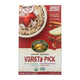 NATURE'S PATH GLUTEN-FREE HOT OATMEAL VARIETY PACK IS MADE WITH ALL NON-GMO PROJECT VERIFIED AND CERTIFIED USDA ORGANIC INGREDIENTS INCLUDING ROLLED OATS, FLAX SEEDS AND ROLLED QUINOA. ONE BOX OF NATURE'S PATH CONTAINS EIGHT PACKETS OF GLUTEN-FREE, VEGAN OATMEAL AND IS LOW IN FAT, WITH ONLY 20 CALORIES FROM FAT PER SERVING. NATURE'S PATH OATMEAL IS AN EXCELLENT SOURCE OF FIBER, WITH 16% OF YOUR DAILY VALUE OF FIBER PER SERVING, FOR A BREAKFAST THAT PROVIDES LONG LASTING ENERGY.